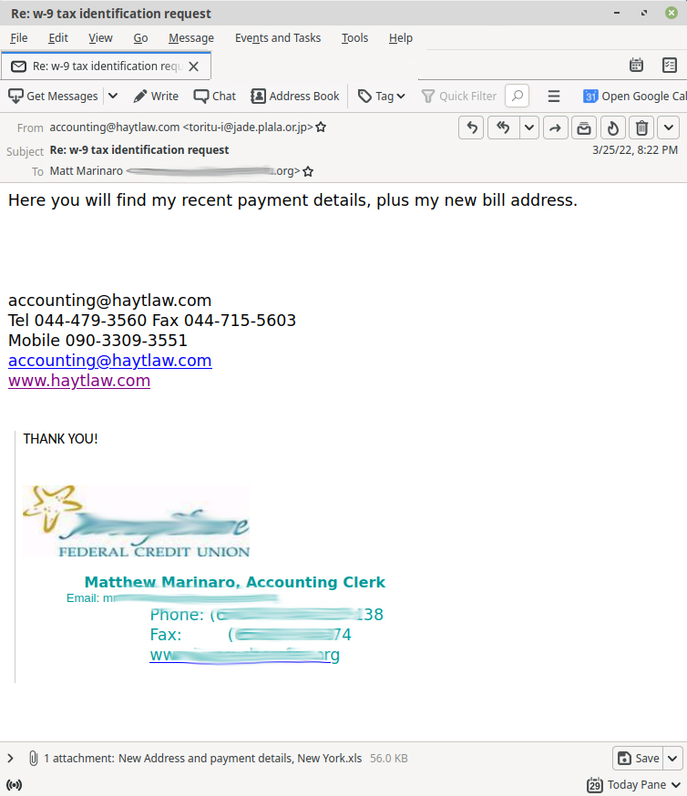 - Business Email Compromise (BEC): these general phishing attempts use spoofed or hacked email addresses to lure in victims.