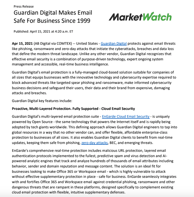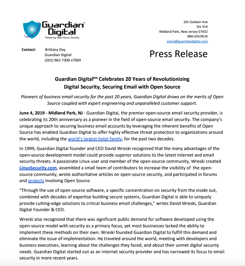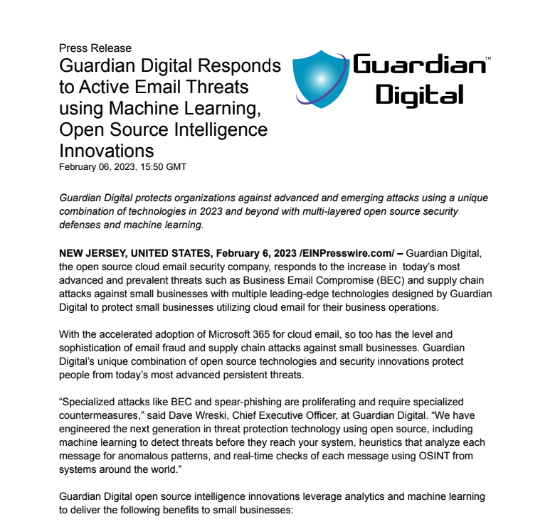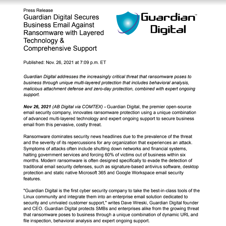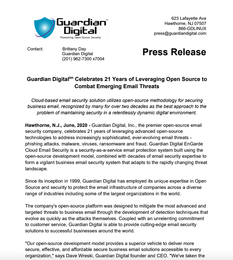 Guardian Digital's Company Information & Press Releases