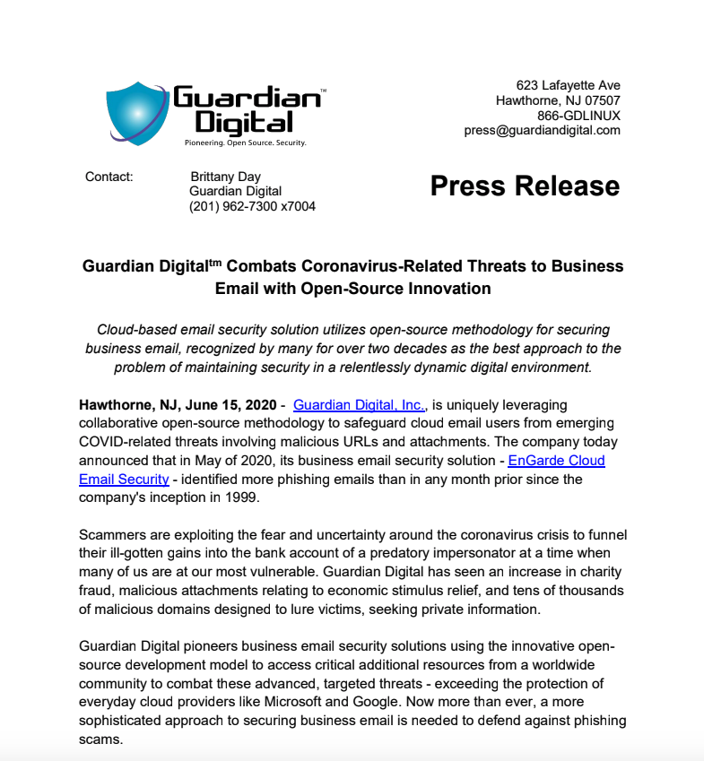 Guardian Digital, Inc., is uniquely leveraging open-source methodology to combat emerging COVID-related email threats.