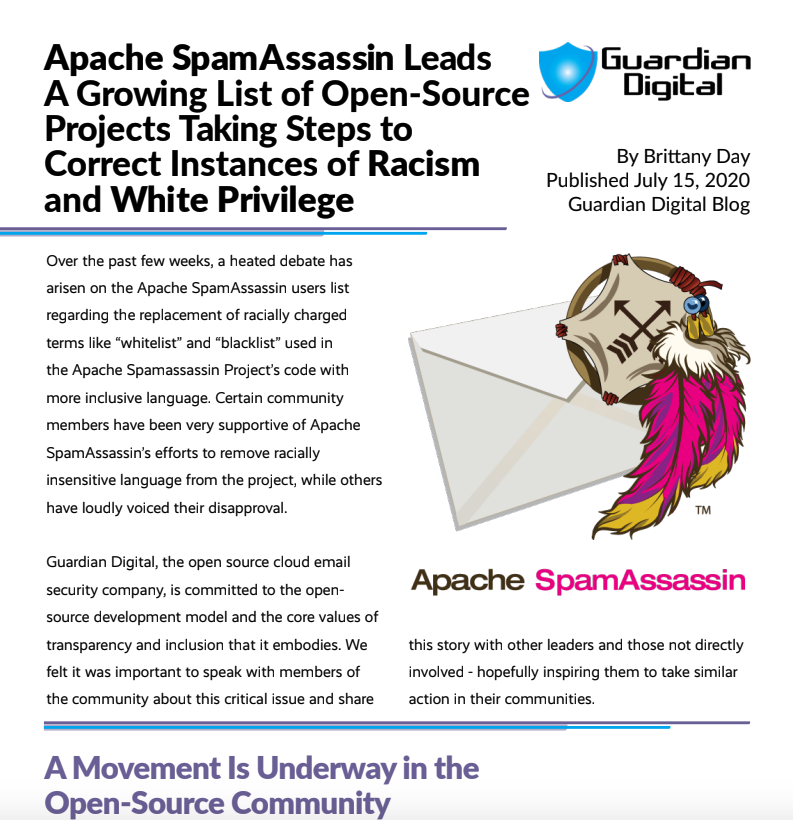 Apache SpamAssassin Leads A Growing List of Open-Source Projects Taking Steps to Correct Instances of Racism and White Privilege. Guardian Digital shows its commitment to transparency and inclusivity.